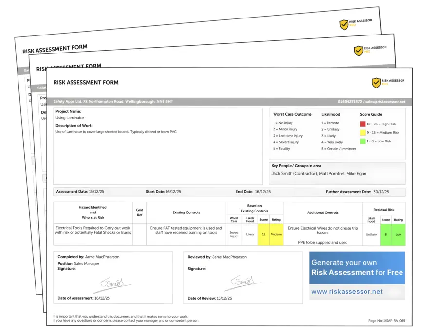 - Link Risk Assessments to Method Statements to create a full RAMS document ready to send on to your clients.